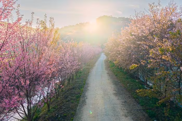 Những ngày đầu năm, khi hơi lạnh còn bao trùm cao nguyên, những cánh hoa hồng phớt của hoa mai anh đào bùng nở khắp các tuyến phố, tạo nên một khung cảnh mộng mơ giữa không gian núi rừng. Theo báo cáo của Sở Du lịch Đà Lạt (2025), hơn 150.000 cây mai anh đào đã được trồng trên toàn thành phố, góp phần làm tăng mức độ hài lòng của du khách lên tới 92%.