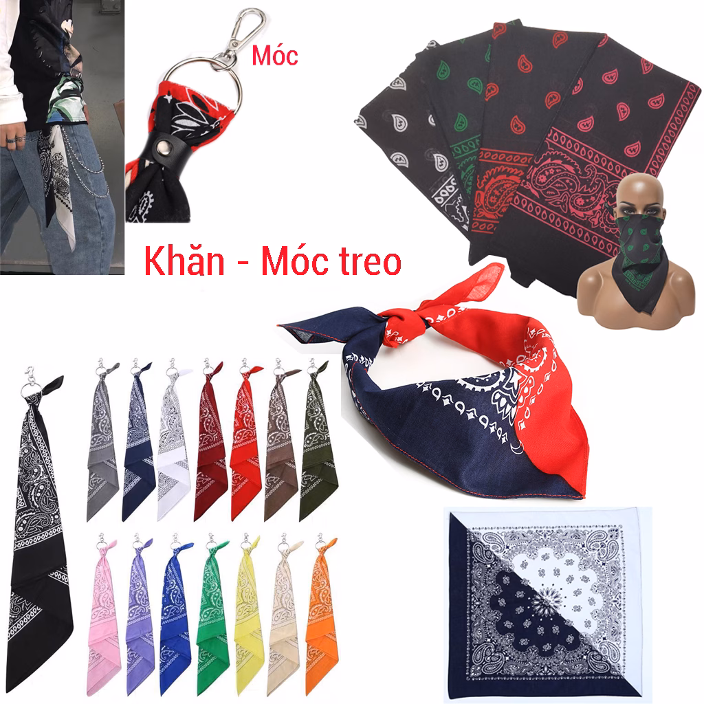 🔥 ?Khăn Bandana Siêu Nhiều Mầu Tặng Móc Chain Khuyên Tròn Cá Tính (Theo Lựa Chọn) (54x54cm) đang giảm giá!