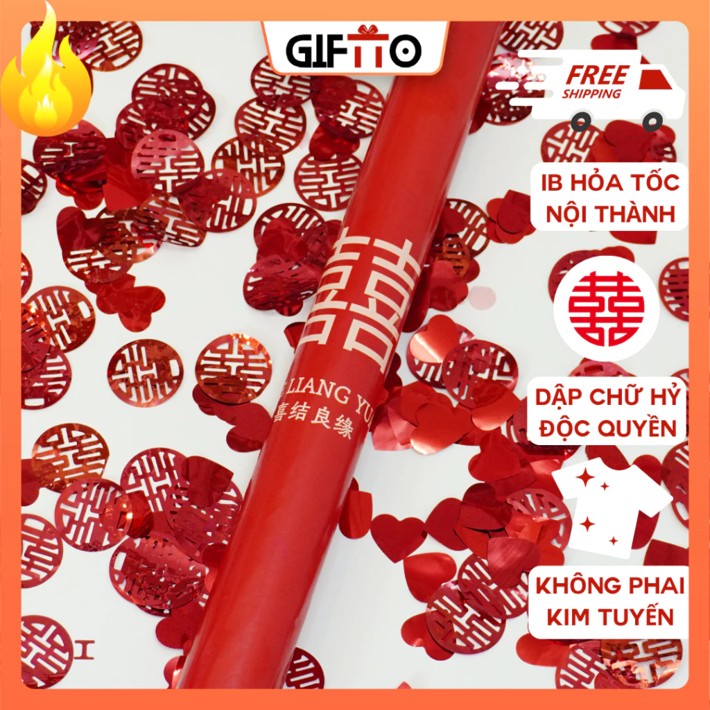 🔥 Pháo giấy kim tuyến Confetti 80cm chất lượng cao, Pháo Chữ Hỷ tiệc cưới, kỷ niệm – GiftTo đang giảm giá!