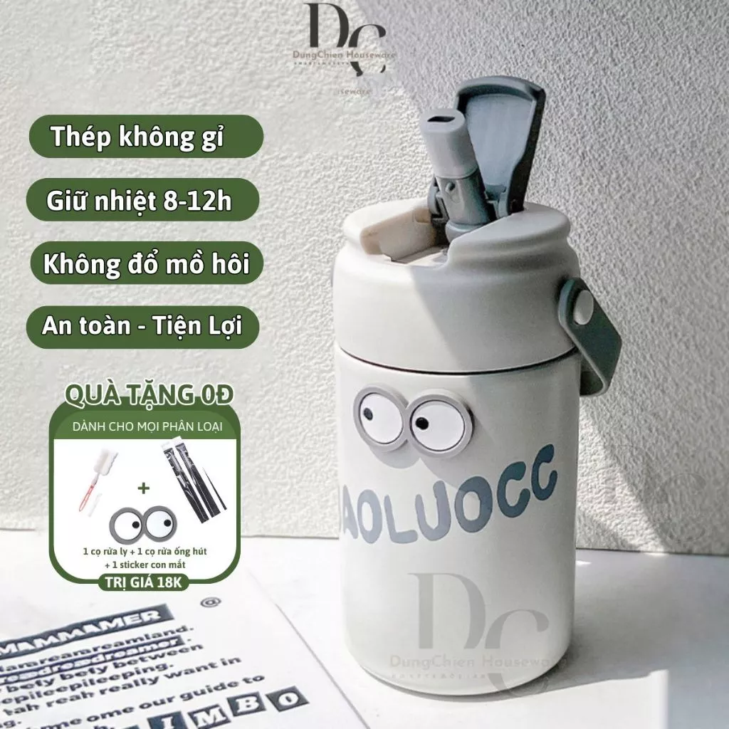 🔥 Ly Giữ Nhiệt Cute Cao Cấp 550ml Innox 316 Không Gỉ, Bình Giữ Nhiệt Có Ống Hút Và Quai Đeo Dễ Thương đang giảm giá!