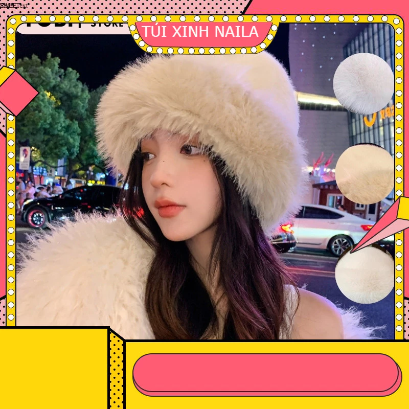 🔥 Mũ len nữ lông mông cổ giữ ấm nón len cừu trùm đầu beret mũ nồi lông thú thời trang mùa đông đi chơi du lịch đang giảm giá!