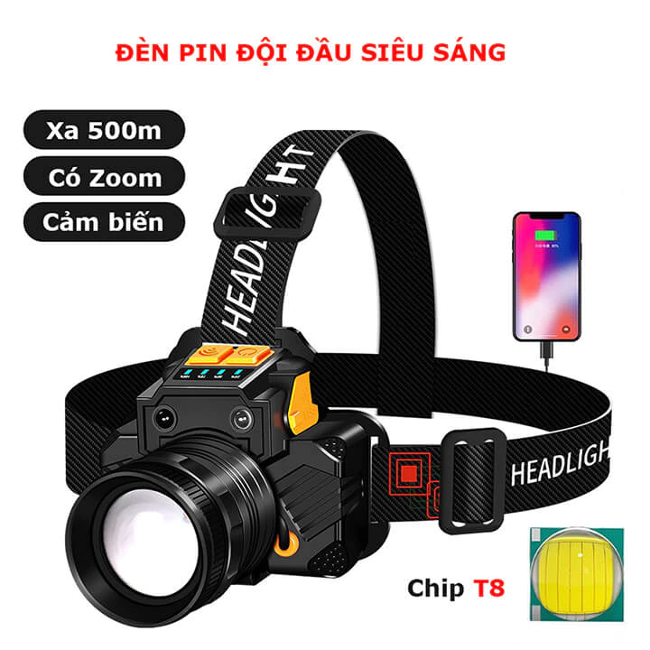 - Chiếu sáng xa: Đèn pin đội đầu siêu sáng 200m có thể chiếu sáng lên đến 200m, giúp chúng ta nhìn rõ ràng trong bóng tối.